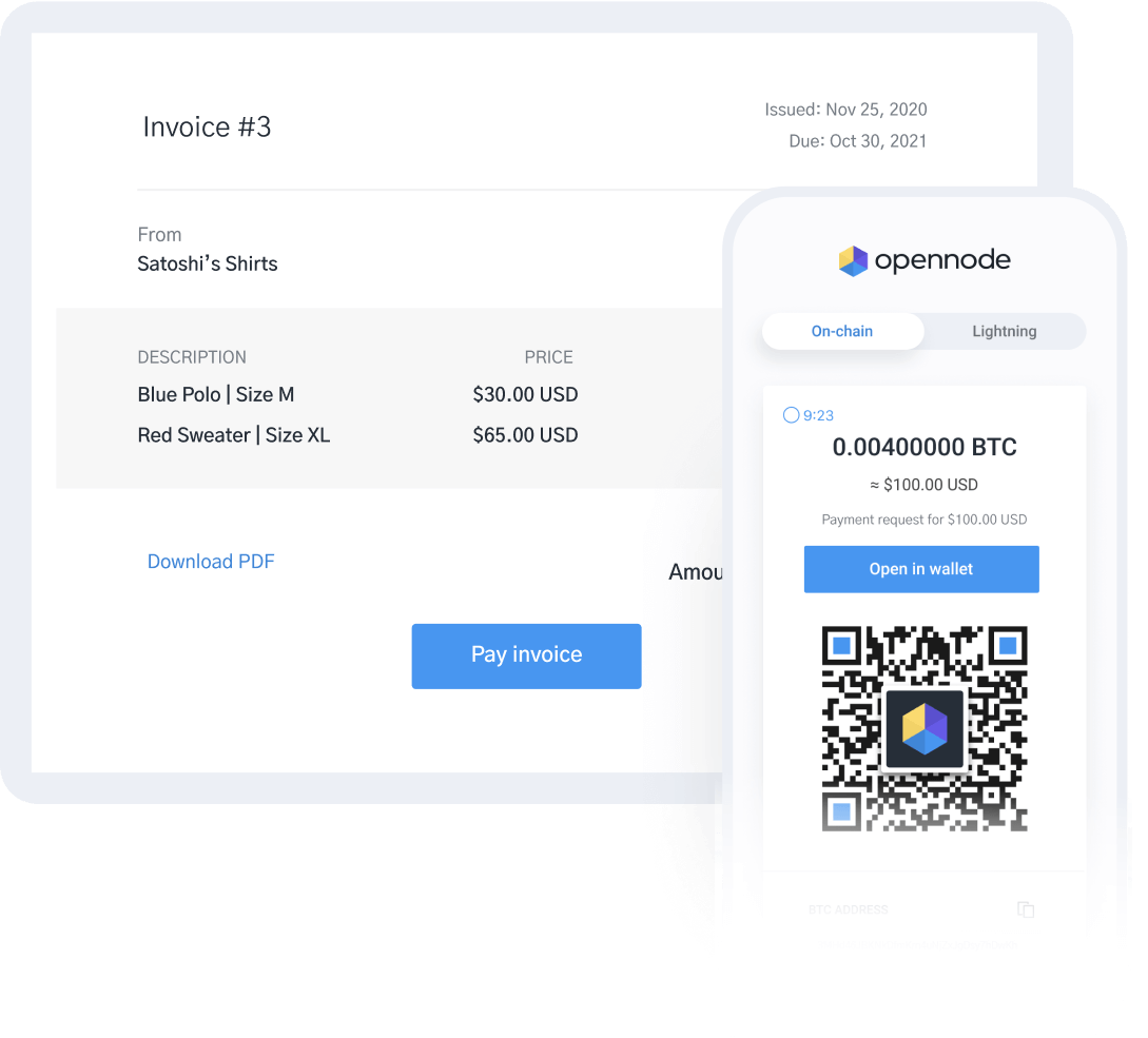 OpenNode makes it simple to request payment in bitcoin. Businesses of all sizes can send custom, itemized B2B and customer invoices for goods, services, and subscriptions.